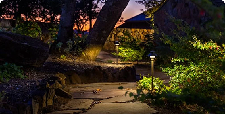 Droši izgaismo celiņus un rada noskaņu, izceļot blakusesošos ainavas elementus.